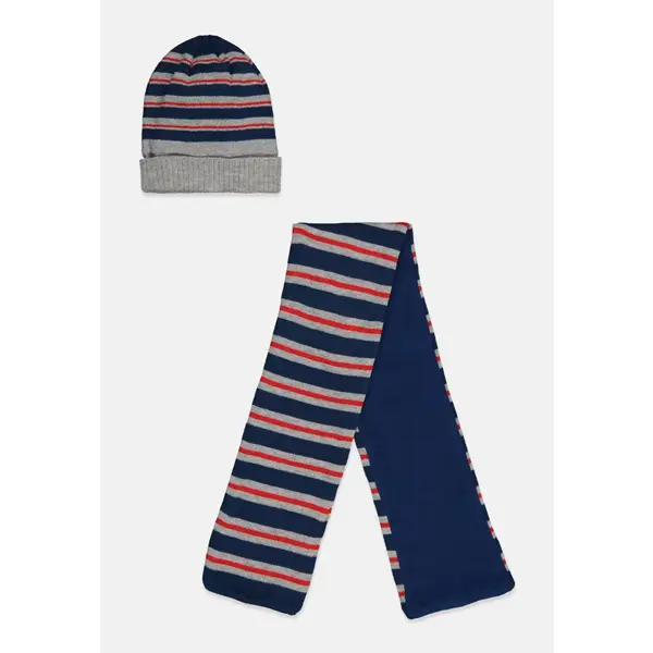 شال و کلاه بچه گانه پسرانه مادرکر مدل Blue Striped